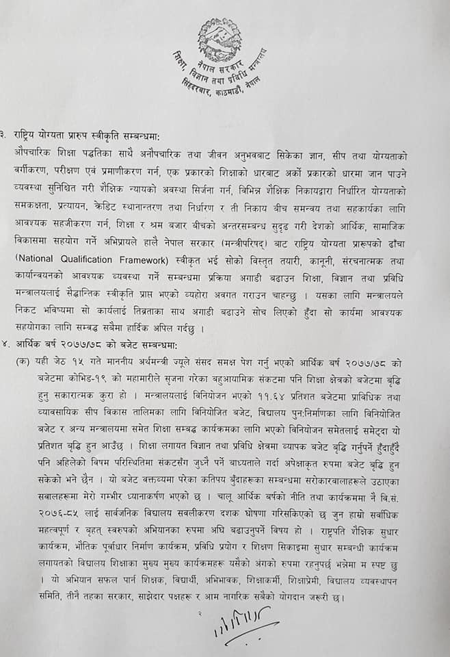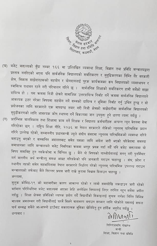 असार १ बाट पठनपाठन शुरु गर्न शिक्षा मन्त्रिको अनुरोध (विज्ञप्ती सहित)