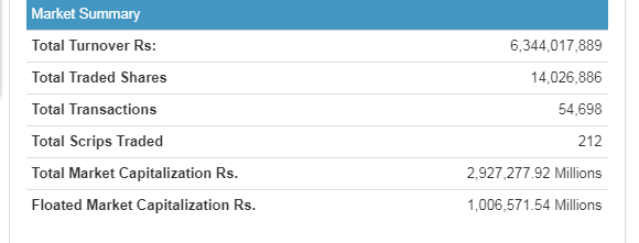 दैनिक कारोबार रकम ६ अर्ब ३४ करोड ४० लाख १७ हजार ८ सय ८९ भएको छ ।