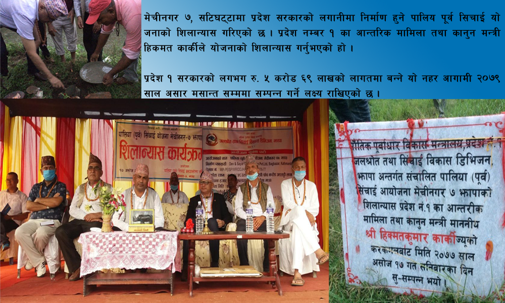 असोज १८ गते, झापा मेचीनगर ७, सटिघट्टामा प्रदेश सरकारको लगानीमा निर्माण हुने पालिय पूर्व सिचाई योजनाको शनिवार शिलान्यास गरिएको छ । प्रदेश नम्बर १ का आन्तरिक मामिला तथा कानुन मन्त्री हिकमत कार्कीले योजनाको शिलान्यास गर्नुभ...