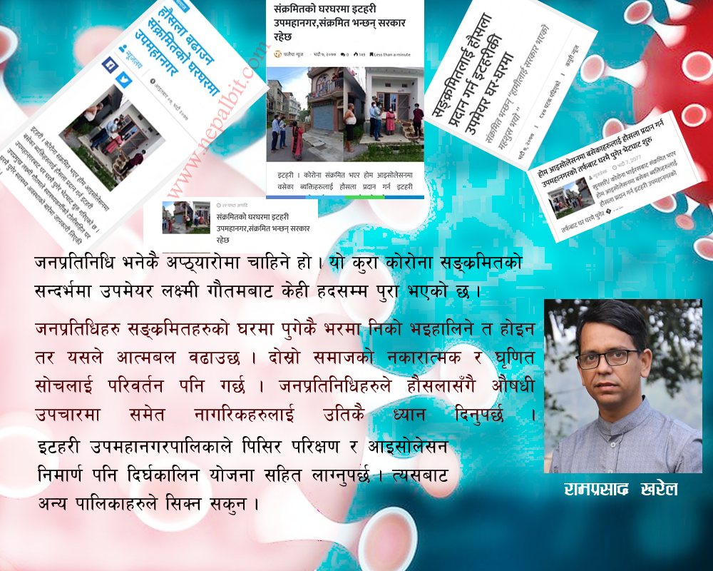 रामप्रसाद खरेल\इटहरी कोरोना सङ्क्रमितहरु भाइरसलेभन्दा वढि सामाजिक दुव्र्यवहारले आतङ्कित भइरहेको समयमा भदौँ ७ गते इटहरी र धरानबाट सञ्चालित केही अनलाईन पत्रिकाहरुमा विभिन्न शिर्षकमा एउटा समाचार प्रकाशन भयो इटहरी उपमहानगरपा...