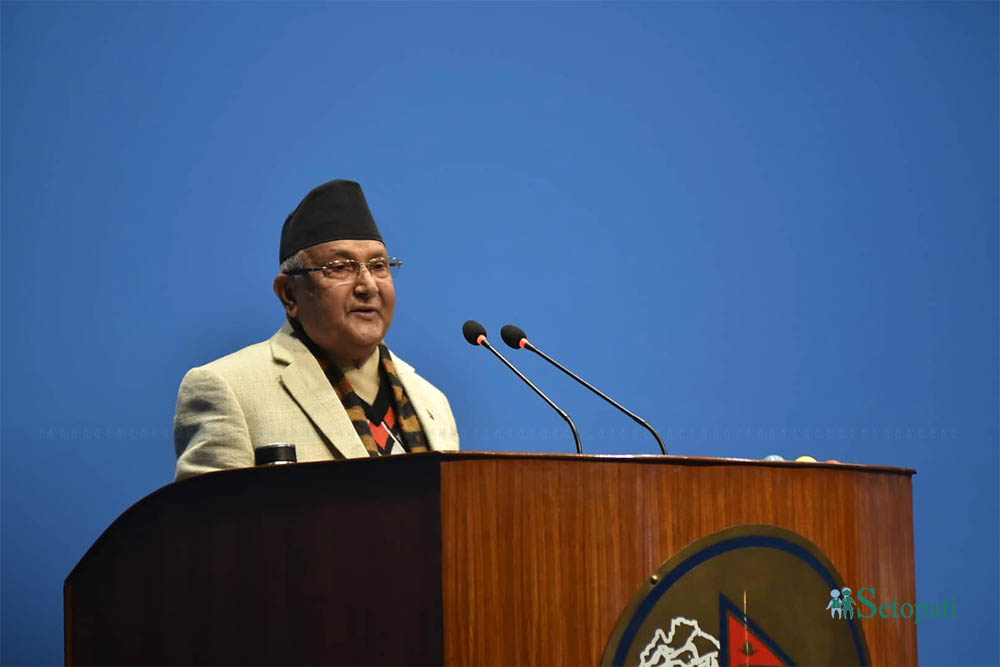 प्रधानमन्त्री केपी शर्मा ओलीले आइतबार प्रतिनिधि सभा बैठकमा सम्बोधन गरेका छन्। राष्ट्र निर्माणको सन्दर्भमा सत्तापक्ष र प्रतिपक्ष नभनि एक भएर अगाडि बढ्न आग्रह गर्दै प्रधानमन्त्री ओलीले राष्ट्र निर्माणको प्रश्नमा कोही पनि प्रतिपक्ष बन्न...